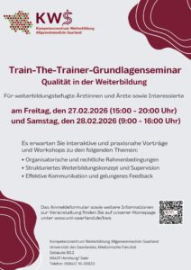 Das Kompetenzzentrum Weiterbildung Allgemeinmedizin Saarland bietet ein Train-The-Trainer-Grundlagenseminar zum Thema Qualität in der Weiterbildung an. Bei dem Grundlagenseminar erwarten Sie interaktive und praxisnahe Vorträge und